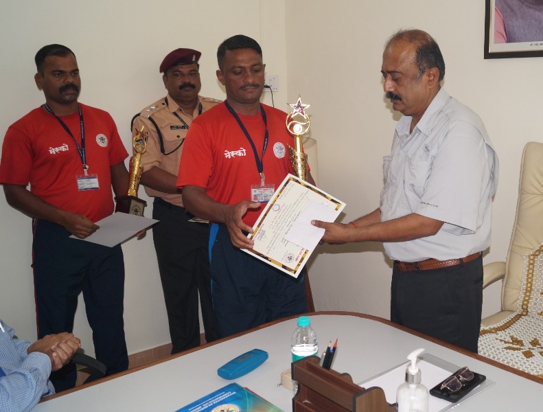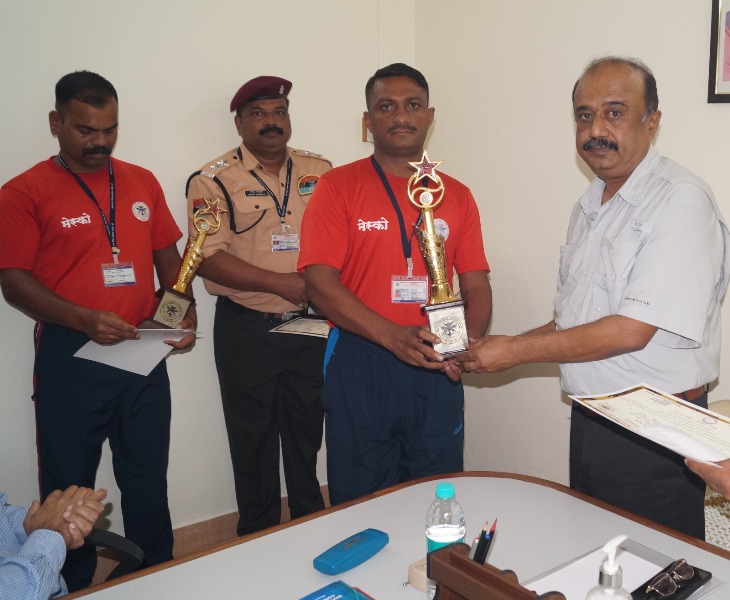 10 ऑक्टोबर 23 रोजी कासारवाडी जलतरण तलावातील मौल्यवान नागरी जीव बाहेर काढल्याबद्दल मेस्को लाइफ गार्ड आणि ऍडएम प्रभारी यांचा सत्कार MD, MESCO द्वारे सैनिक कल्याण हॉल येथे साप्ताहिक कॉन्फरन्स दरम्यान. मेस्कोच्या वतीने त्यांना स्मृतीचिन्ह, प्रशंसा प्रमाणपत्र आणि रोख पारितोषिक देण्यात आले.